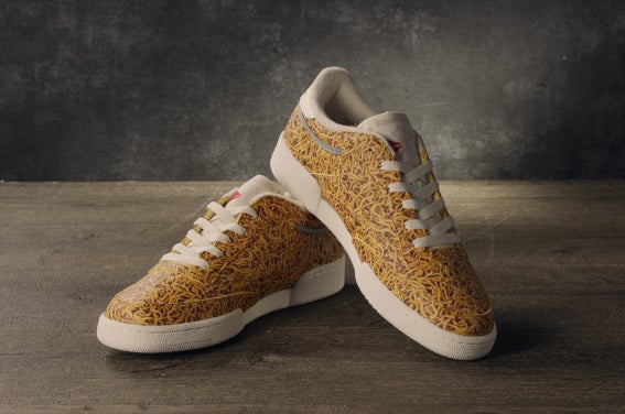 原宿のスニーカーショップ「atmos(アトモス)」とスニーカーブランド「Reebok」とトリプルコラボし、オリジナルスニーカー「ベビースターラーメンスニーカー」を数量限定の発売もしているのだ。