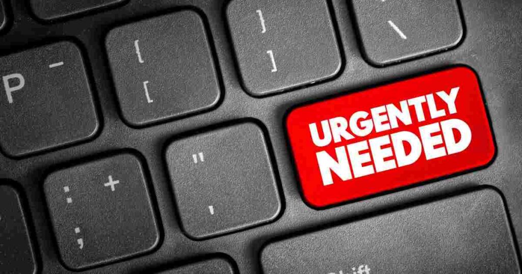 - 時間的な猶予がない、緊急性が高い状況を強調する。