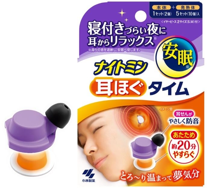 「ナイトミン 耳ほぐタイム」は耳せんに発熱体がついており、遮音効果のみならず耳を温めることによるリラックス効果が期待できる。