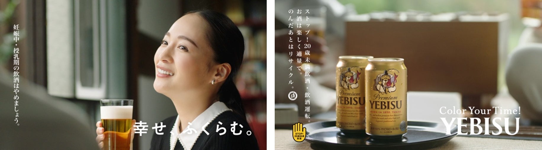 一方の新しいエビスは、人との比較があまり意味を持たない、よりパーソナルな喜びや感動を消費者にもたらそうとする。その姿勢はリブランディング慣行直後のテレビCMのコピー「Color Your Time! 幸せ、ふくらむ。」。